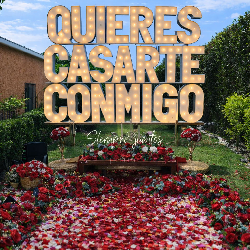 3–6 PM · Propuesta con letras gigantes personalizadas, picnic romántico, staff y comida opcional